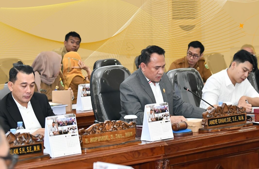 PALEMBANG, SE – Ketua Dewan Perwakilan Rakyat Daerah (DPRD) Provinsi Sumsel Andie Denaldie bersama anggota menggelar rapat Badan Anggaran (Banggar) dengan Tim LAnggaran Pemerintah Daerah (TAPD) bersama Inspektorat Provinsi Sumatera Selatan, Selasa (17/06/25).